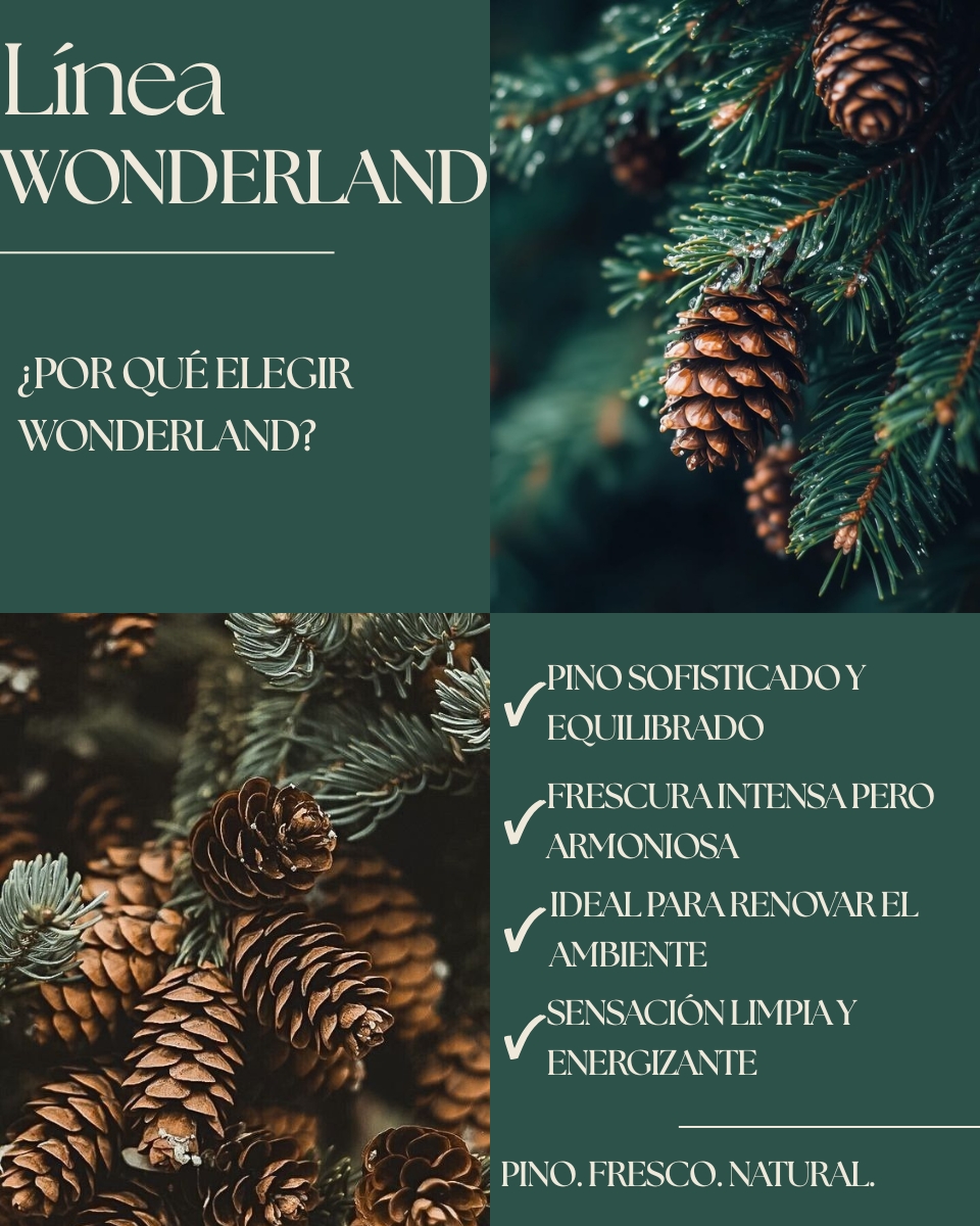WONDERLAND nuestro best seller Navideño, aroma fresco a pino, elegante. Navidad en un frasco.